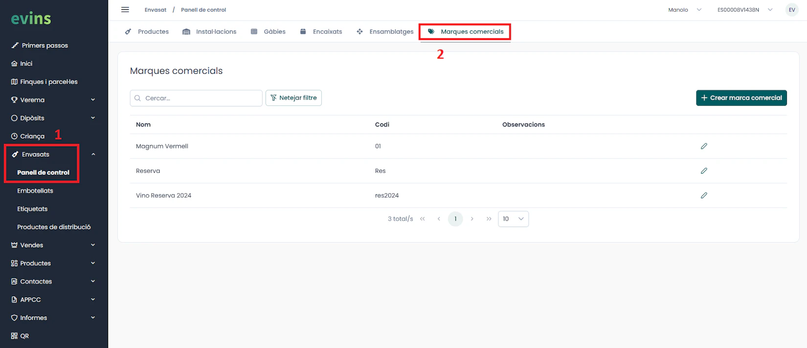 Una vez dentro de la sección "Marques comercials", haz clic en el botón "Crear marca comercial".